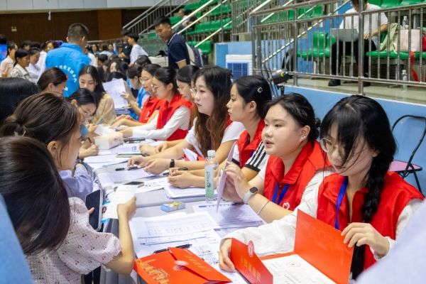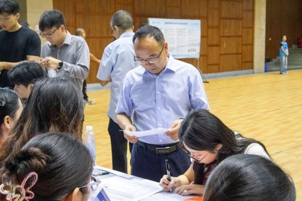 秋阳虽暖,不及迎新热情。迎新现场,辅导员和迎新志愿者分工明确,耐心解答新生和家长的疑问,帮助新生顺利完成新生报到。