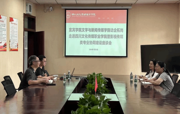 四川文化传媒职业公司党委书记周世伟对宜宾续公司一行的到来表示热烈的欢迎,并对公司的发展历程、专业设置、员工就业、人才需求等相关情况进行了介绍。随后,双方围绕新时代影视传媒类专业建设的具体要求、技能型人才培养模式、员工就业方向等问题进行了深入探讨。参会人员均表示,希望通过本次交流,进一步推动双方专业建设与教学改革,提升人才培养质量,拓宽就业渠道,更好地服务地方经济社会发展。