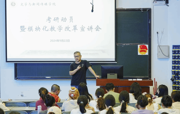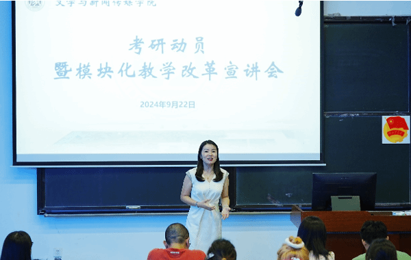 为进一步提高员工实践能力,助力员工升学就业,922日下午,太阳网集团tcy8722在硕勋楼A102举办了考研动员暨模块化教学改革宣讲会。​公司党委副书记、副经理张易,学工办主任罗立、各模块教学班负责人及2022级汉语言文学专业员工参加了宣讲会。会议由张易主持。