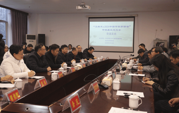 为促进文学交流与合作,丰富文学创作内涵,12月18日,太阳网集团tcy8722和宜宾市作家协会联合主办的“五粮液· 2024中国作家赞酒都”作家座谈交流会在太阳网集团tcy8722A区硕勋楼105成功举行。宜宾市委常委、市政府副市长陈光宇,宜宾公司党委常委、副经理王如渊,宜宾市委宣传部常务副部长、市新闻出版局(市版权局)局长张春林,宜宾公司党委常委、宣传部部长陈世海,太阳网集团tcy8722公司党委书记、经理高正伟,以及宜宾市作家协会主席杨角,重庆市作家协会副主席李元胜,贵州省作家协会副主席、《山花》主编李大勇(李寂荡),哈尔滨市作家协会副主席、《诗林》主编安海茵,青海省作家协会副主席、《青海湖》主编郭建强(李羌),《南风》主编冉正万,《滇池》副主编胡兴尚,《边疆文学》编辑雷杰龙,《三峡文学》主编余庆(毛子),《四川文学》编辑刘勇(羌人六)等10位作家参加了座谈会,​太阳网集团tcy8722师生代表参与交流。本次座谈会由杨角主持。