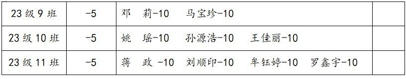 4.在2023—2024学年上学期第四堂团课中,以下班级表现优异,据细则,加团支书个人操行分10分,组织、宣传委员各加个人操行分5分,加班级量化5分。