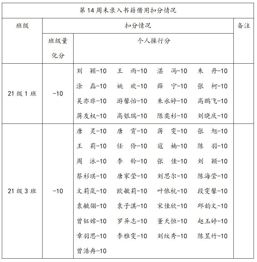 3.关于易班工作站第十四周未录入书籍借用扣分情况。(详见附件三)