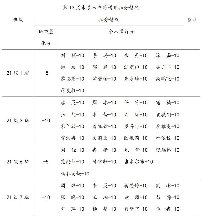 2.关于易班工作站第十三周未录入书籍借用扣分情况。(详见附件二)
