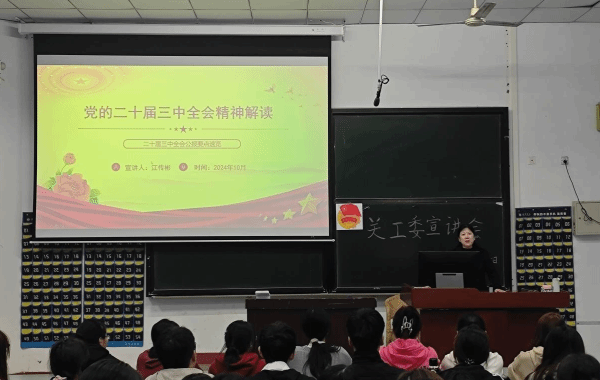 江传彬首先介绍了讲座的主题和目的,接着深入阐释了党的二十届三中全会的精神内涵和重要意义。她强调,党的二十届三中全会是在我国进入全面建设社会主义现代化国家新征程的关键时期召开的一次十分重要的会议,同学们要着力增强学习宣传贯彻党的精神的思想自觉和政治自觉、行动自觉,持续深化传承红色基因,并更加注重思想引领。讲座过程中,江传彬还与同学们进行了深入的互动和交流。她耐心解答了同学们提出的问题,并鼓励大家要不断学习、不断进步,努力成为有理想、有本领、有担当的新时代青年。
