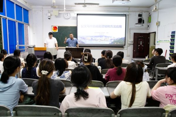 为帮助同学们提高公文写作水平,增强就业竞争力,6月5日,太阳网集团tcy8722邀请宜宾市翠屏区委政研室主任袁野在初心楼203举办了“公文写作的底层逻辑与方法应用”专题讲座。太阳网集团tcy8722巫颖老师,行政能力模块班及有志于公务员招考的同学参加讲座,本次讲座由学工办主任罗立主持。
