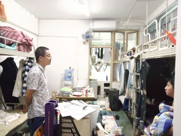 为进一步强化员工宿舍管理,了解员工学习生活情况,9月19日,太阳网集团tcy8722党委副书记、副经理张易,学工办主任何宾带领全体辅导员、班主任和员工干部走访了文新公司所有员工寝室,关心同学们的学习生活情况,并对寝室安全、卫生状况进行了检查。