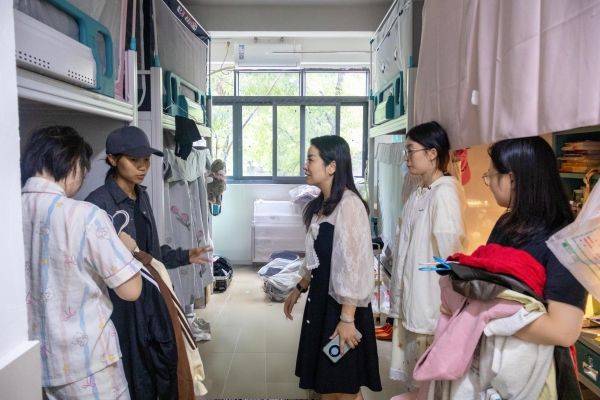 走访过程中,张易与同学们进行了深入的交流互动。她亲切询问大家的学习情况、生活感受,耐心倾听同学们对宿舍管理、校园生活的意见和建议。同时,张易鼓励同学们积极面对学习与生活中的困难,不断提升个人综合素质。