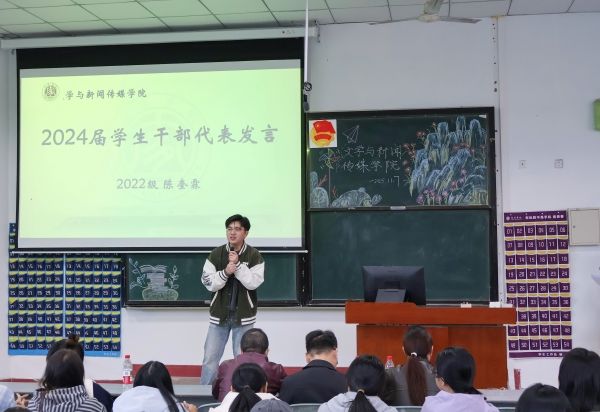 随后,学工办老师依次为2024届团委员工会干部颁发聘书并宣读了2025届干部名单。陈奎霖代表2024届团委员工会发言,他全面回顾了过去一年团委员工会在思想引领、活动开展、服务同学等方面的工作成果,分享了工作中的经验与感悟,并对公司领导老师的悉心指导和全体成员的辛勤付出表示衷心感谢。易星余代表2025届团委员工会进行发言,她表示将以身作则,带领大家共同进步,将团委员工会的各项事务落实到位。