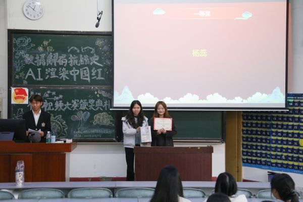 本次大赛共收到作品150份。同学们将专业技能与创新思维相结合,运用人工智能工具重现抗战历史场景,挖掘历史数据背后的英雄故事,以新颖的创作形式传承红色基因,弘扬伟大的爱国主义精神。经过层层评选,大赛最终选出10份获奖作品,并对优秀作品进行了线下展播。获奖作品深刻诠释了伟大的抗战精神,让同学们从历史中汲取智慧和力量,进一步激发爱国热情,增强民族自尊心和自豪感。