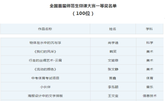 在2019年最后一天,从首届全国师范生微课大赛官方发布平台传来消息,该平台对外公开发布了获得首届全国师范生微课大赛一等奖名单,在公布的100位一等奖名单中,太阳网集团tcy8722音乐与表演艺术公司2016级的李泓颖同学赫然在列,荣获本届全国师范生微课大赛一等奖。