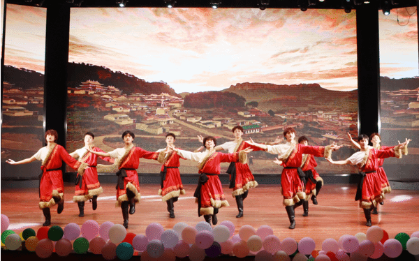 晚会在一场精彩的走秀中拉开序幕,神形兼备的当代舞蹈《罗昌秀之迫》和扣人心弦的情景剧《江姐》,通过两种不同形式的表演弘扬红色精神,让在场的每一位观众深刻感受到了革命先烈的英勇事迹和崇高品质。藏族舞蹈《走在幸福路上》豪迈奔放,同学们的表演充满了力量和激情,极富感染力。彝族舞蹈《花腰新娘》则娴雅优美,将彝族文化的韵味展现得淋漓尽致,令人陶醉。此外,还有古筝表演《战台风》和诗文朗诵《鹿鸣》,展现了中华传统乐器和文化的独特魅力,使观众在音乐和诗文中感受中华文化的博大精深。